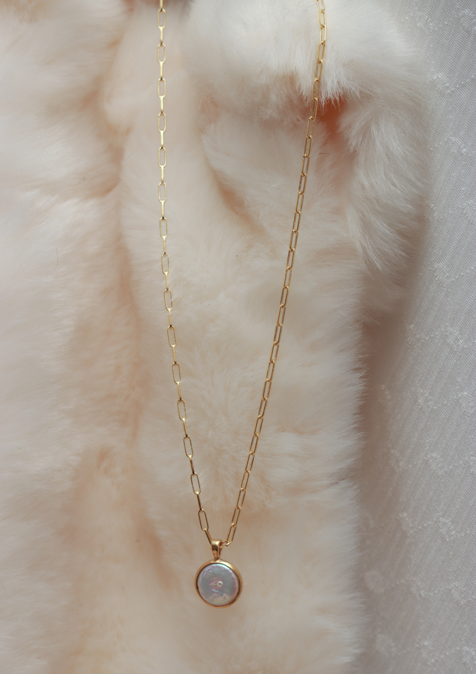 Freshwater Coin Pearl (11-12mm) Set in Gold Plated Paper Clip Chain