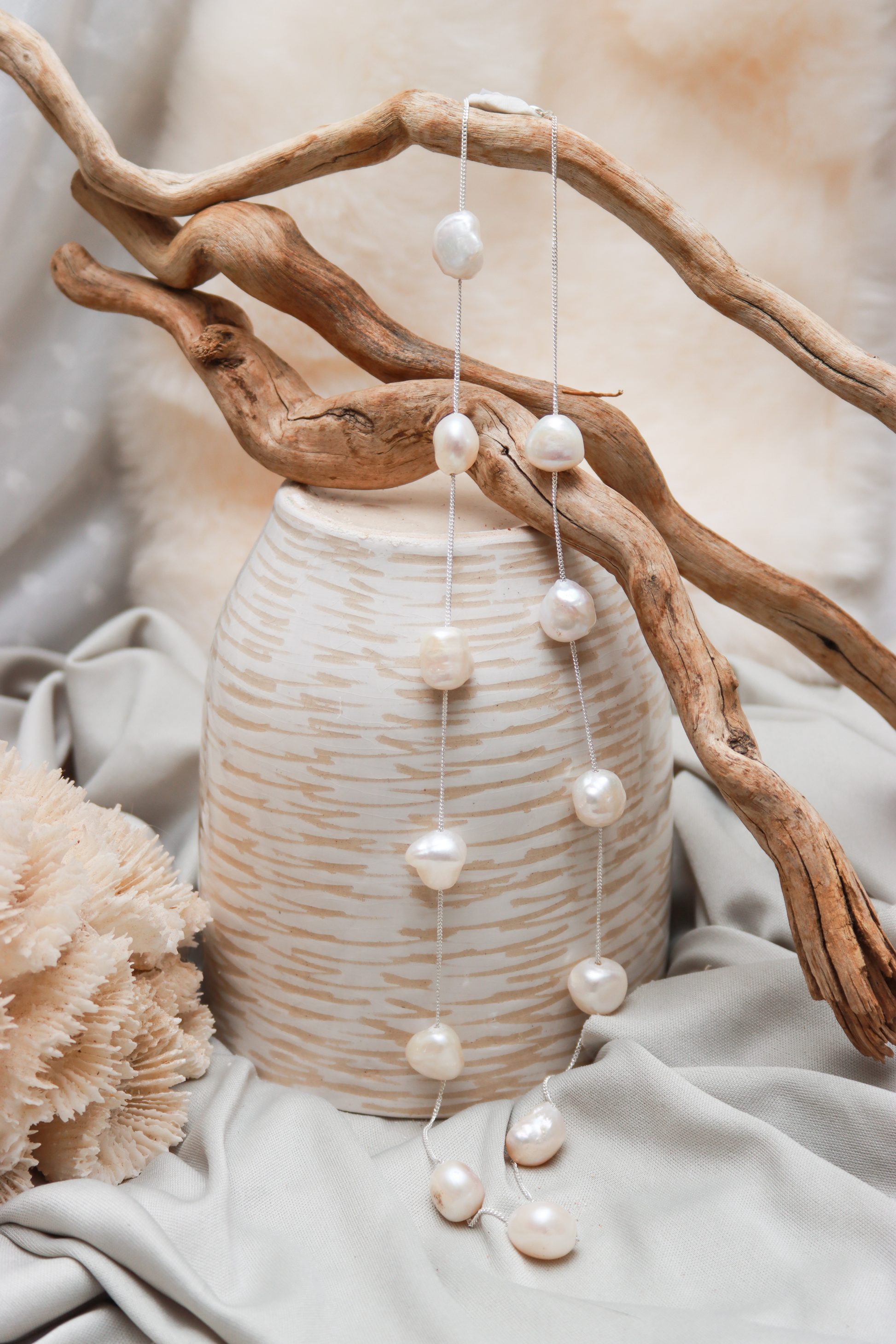 The delicate arrangement of lustrous pearls, paired with a subtle silver clasp, makes this piece versatile enough for both everyday wear and special occasions. Elegant, natural, and sustainable — this necklace is more than just jewellery; it’s a story of local craftsmanship and timeless beauty.